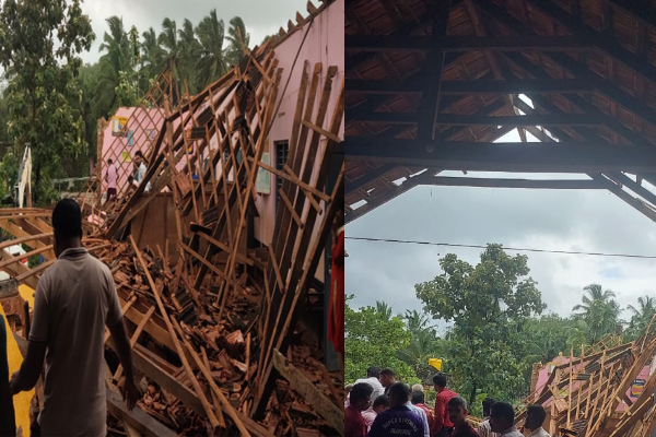 ಶಾಲಾ ಕೊಠಡಿಯ ಗೋಡೆ ಹಾಗೂ ಮೇಲ್ಛಾವಣಿ ಕುಸಿದು ಬಿದ್ದ ಪರಿಣಾಮ ನಾಲ್ವರು ವಿದ್ಯಾರ್ಥಿಗಳು ಸಣ್ಣಪುಟ್ಟ ಗಾಯಗಳೊಂದಿಗೆ ಅದೃಷ್ಟವಶಾತ್ ಪ್ರಾಣಾಪಾಯದಿಂದ ಪಾರಾದ ಘಟನೆ ಮಧ್ಯಾಹ್ನ ದಕ್ಷಿಣ ಕನ್ನಡ ಜಿಲ್ಲೆಯ ಕಡಬ ತಾಲೂಕಿನ ಕುಂತೂರಿನಲ್ಲಿ ನಡೆದಿದೆ.