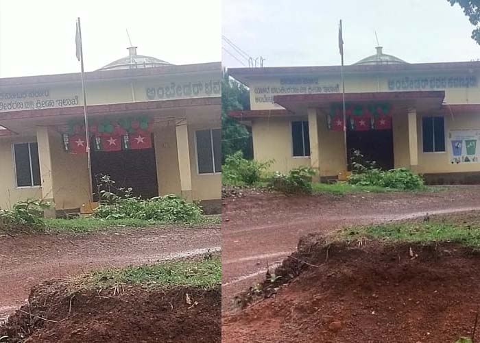 ಎಸ್ ಬಿ ಪಿ ಐ ಪಕ್ಷದ ಕಾರ್ಯಕ್ರಮ ಒಂದರ ಹಿನ್ನೆಲೆಯಲ್ಲಿ ನಿನ್ನೆ ಅಂಬೇಡ್ಕರ್ ಭವನ ಮತ್ತು ಅದರ ಎದುರು ಇರುವ ದ್ವಜಸ್ತಂಭದಲ್ಲಿ ಎಸ್ ಡಿ ಪಿ ಐ ಪಕ್ಷದ ಧ್ವಜವನ್ನು ಹಾರಿಸಿರುವುದು ನಿನ್ನೆ ಸಂಜೆ ವೇಳೆ ಕಂಡು ಬಂದಿದೆ.