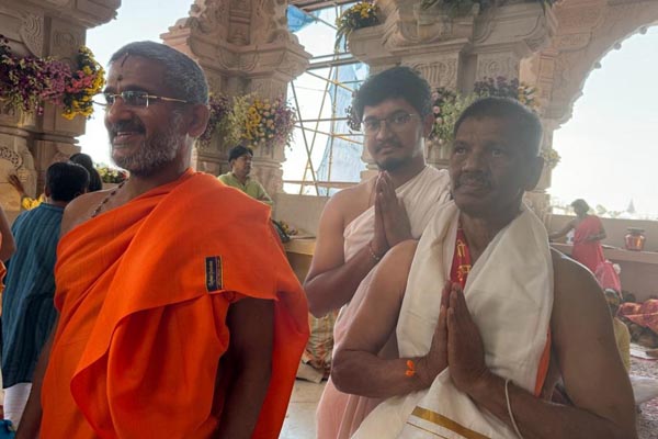 ಪಾಂಡುರಂಗ ಶಾನುಭಾಗರಿಗೆ ಅಯೋಧ್ಯೆಯಲ್ಲಿ ಪೇಜಾವರ ಶ್ರೀಗಳು ಇಂದು ಬೆಳಿಗ್ಗೆ ಸಂತೋಷದಿಂದ ತೀರ್ಥಪ್ರಸಾದ ನೀಡಿ, ಸಂಸ್ಕೃತದಲ್ಲೇ ಸಂಭಾಷಣೆ ನಡೆಸಿ ಕುಶಲೋಪರಿ ನಡೆಸಿದ್ದರು.