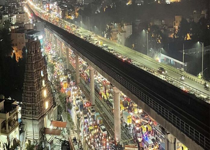 ಇನ್ನು ಎಲೆಕ್ಟ್ರಾನಿಕ್ ಸಿಟಿ ಮೇಲ್ಸೇತುವೆ ಮೇಲೆ ಸಾಮಾನ್ಯವಾಗಿಯೇ ಸಂಚಾರ ದಟ್ಟಣೆ ಇರುತ್ತದೆ. ಅಂತಹುದರಲ್ಲಿ ಮಳೆ ಬಂದರೆ ಇಲ್ಲಿ ಪರಿಸ್ಥಿತಿ ಮತ್ತಷ್ಟು ಹದಗೆಡುತ್ತದೆ. ಬುಧವಾರ ಸಂಜೆ ಭಾರಿ ಮಳೆ ಸುರಿದ ಹಿನ್ನಲೆಯಲ್ಲಿ ರಸ್ತೆಗಳು ಜಲಾವೃತಗೊಂಡಿದ್ದವು. ಹೀಗಾಗಿ ಸಂಚಾರ ಪೊಲೀಸರು ಮುಂಜಾಗ್ರತಾ ಕ್ರಮವಾಗಿ ಎಲೆಕ್ಟ್ರಾನಿಕ್ ಸಿಟಿ ಮೇಲ್ಸೇತುವೆಯ ಒಂದು ಬದಿಯನ್ನು ಬಂದ್ ಮಾಡಿದ್ದಾರೆ. ಇದರಿಂದಾಗಿ ಎರಡು ಗಂಟೆಗೂ ಹೆಚ್ಚು ಕಾಲ ಟ್ರಾಫಿಕ್ ಜಾಮ್ ಉಂಟಾಗಿತ್ತು.