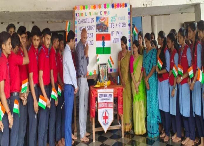 ಕಾರ್ಗಿಲ್ ನಲ್ಲಿ ನಮ್ಮ ಯೋಧರು ಮಾಡಿದ ಸಾಧನೆಯು ನಮಗೆಲ್ಲರಿಗೂ ಹೆಮ್ಮೆ.ಅತ್ಯಂತ ಕಾಠಿಣ್ಯ ಪ್ರದೇಶವಾದ ಕಾಗ್ರಿಲ್ ನಲ್ಲಿ ನಡೆದ ಯುದ್ಧದಲ್ಲಿ ನಮ್ಮ ಯೋಧರ ಅಪ್ರತಿಮ ಪರಾಕ್ರಮವು ವಿಜಯ ದುಂದುಬಿಯನ್ನು ಭಾರಿಸುವಂತೆ ಮಾಡಿದೆ. ಈ ವಿಜಯವು ಸರ್ವ ಭಾರತೀಯರಿಗೆ ಹೆಮ್ಮೆಯ ಪ್ರತೀಕವಾಗಿದೆ. ಯುವ ವಿದ್ಯಾರ್ಥಿಗಳಾದ ತಾವುಗಳು ಭವಿಷ್ಯದಲ್ಲಿ ಭಾರತೀಯ ಸೇನೆಗೆ ಸೇರಿ ಯೋಧರಾಗಿ ದೇಶಸೇವೆ ಮಾಡುವ ಸಂಕಲ್ಪ ಮಾಡಬೇಕಾಗಿದೆ.ದೇಶ ಸೇವೆಗೆ ದೊರಕುವ ಅವಕಾಶವು ನಮ್ಮ ಭಾಗ್ಯವಾಗಿದ್ದು ಇದಕ್ಕೆ ವಿದ್ಯಾರ್ಥಿಗಳು ಮನಪೂರ್ವಕವಾಗಿ ಸಜ್ಜಾಗಬೇಕು ಎಂದು ಎಸ್ ಎಸ್ ಪಿಯು ಕಾಲೇಜಿನ ಪ್ರಾಚಾರ್ಯ ಸೋಮಶೇಖರ ನಾಯಕ್ ವಿದ್ಯಾರ್ಥಿಗಳಿಗೆ ಕರೆ ನೀಡಿದರು.