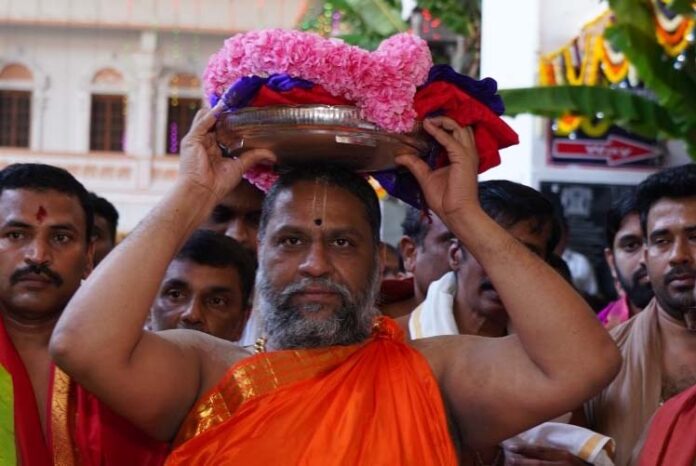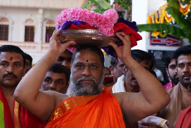ತಿರುಪತಿ ತಿರುಮಲ ದೇವಸ್ಥಾನದಿಂದ ಶ್ರೀ ರಾಘವೇಂದ್ರ ಸ್ವಾಮಿಗಳ ೩೫೨ನೇ ಆರಾಧನಾ ಮಹೋತ್ಸವದ ಮಧ್ಯಾರಾಧನೆ ಅಂಗವಾಗಿ ಮಂತ್ರಾಲಯಕ್ಕೆ ಆಗಮಿಸಿದ ಶೇಷ ವಸ್ತ್ರವನ್ನು ಶ್ರೀ ರಾಘವೇಂದ್ರ ಸ್ವಾಮಿ ಮಠದ ಆಡಳಿತ ಅಧಿಕಾರಿಗಳು, ಸಿಬ್ಬಂದಿಗಳು ಸ್ವಾಗತಿಸಿದರು.