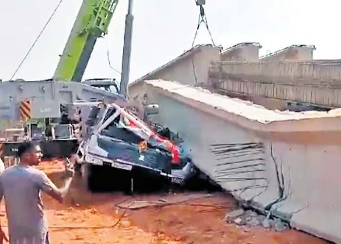 ಪಿಲ್ಲರ್‌ಗಳ ನಡುವೆ ಸೇತುವೆಗೆ ಹಾಕಲಾಗಿದ್ದ ಸ್ಲ್ಯಾಬ್‌ ಕುಸಿತವಾಗಿದ್ದು, ಬಹುವರ್ಷಗಳ ಜನರ ಬೇಡಿಕೆ ಮಣ್ಣು ಪಾಲಾಗಿದೆ. ನಿರ್ಮಾಣ ಕಾರ್ಯ ನಡೆಯುತ್ತಿದ್ದ ವೇಳೆ ಸೇತುವೆ ಕುಸಿದಿದ್ದು, ಅದರ ಕೆಳಗಿದ್ದ ಟ್ರಕ್‌, ಜೆಸಿಬಿ, ಹಾಗೂ ಕಾರು ಜಖಂ ಆಗಿದೆ. ಅದೃಷ್ಟವಶಾತ್‌ ಯಾವುದೇ ಪ್ರಾಣಹಾನಿ ಆಗಿಲ್ಲ.