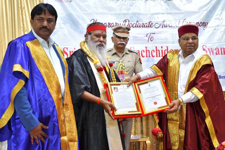 ಅರಮನೆ ನಗರಿ ಮೈಸೂರಿನ ಕರ್ನಾಟಕ ರಾಜ್ಯ ಡಾ.ಗಂಗೂಬಾಯಿ ಹಾನಗಲ್ ಸಂಗೀತ ಮತ್ತು ಪ್ರದರ್ಶಕ ಕಲೆಗಳ ವಿಶ್ವವಿದ್ಯಾಲಯ ವತಿಯಿಂದ 6ನೇ ಘಟಿಕೋತ್ಸವದ ಅಂಗವಾಗಿ ಮೈಸೂರಿನ ಅವಧೂತ ದತ್ತ ಪೀಠದ ಪೀಠಾಧಿಪತಿಗಳಾದ ಶ್ರೀ ಗಣಪತಿ ಸಚ್ಚಿದಾನಂದ ಸ್ವಾಮಿ ಅವರಿಗೆ ನೀಡಲಾಗಿರುವ ಗೌರವ ಡಾಕ್ಟಾರೇಟ್ ಅನ್ನು ರಾಜಭವನದಲ್ಲಿ ನಡೆದ ಸರಳ ಸಮಾರಂಭದಲ್ಲಿ ರಾಜ್ಯಪಾಲ ಥಾವರ್ ಚಂದ್ ಗೆಹ್ಲೋಟ್ ಅವರು ಪ್ರದಾನ ಮಾಡಿದರು.