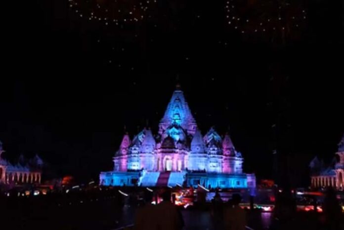 ಅಂದಹಾಗೆ ಅಮೆರಿಕದ ನ್ಯೂಜೆರ್ಸಿಯಲ್ಲಿ ಇದೀಗ ಲೋಕಾರ್ಪಣೆ ಮಾಡಲಾಗಿರುವ ದೇಗುಲ ಸುಮಾರು 183 ಎಕರೆ ವಿಸ್ತೀರ್ಣದಲ್ಲಿ ನಿರ್ಮಿಸಲಾಗಿದೆ. ದೇಗುಲವನ್ನು 12 ಸಾವಿರ ಸ್ವಯಂ ಸೇವಕರೇ ನಿರ್ಮಾಣ ಮಾಡಿರುವುದು ವಿಶೇಷ. ಬಿಎಪಿಎಸ್ ಸ್ವಾಮಿನಾರಾಯಣ್ ಅಕ್ಷರಧಾಮ ದೇಗುಲವನ್ನು ನಿರ್ಮಿಸಿದ್ದು, ಆಧುನಿಕ ಕಾಲದಲ್ಲಿ ಭಾರತದಿಂದ ಹೊರಗೆ ನಿರ್ಮಿಸಿರುವ ಅತಿ ದೊಡ್ಡ ದೇಗುಲ ಎಂಬ ಹೆಮ್ಮೆಯನ್ನೂ ಈ ದೇವಸ್ಥಾನ ಪಡೆದಿದೆ. ಸುಮಾರು 4.7 ದಶಲಕ್ಷ ಗಂಟೆ ಸಮಯವನ್ನು ದೇಗುಲದ ನಿರ್ಮಾಣಕ್ಕೆ ತೆಗೆದುಕೊಳ್ಳಲಾಗಿದೆ. ಈ ಮೂಲಕ ಎಲ್ಲಾ ವಿಚಾರದಲ್ಲೂ ಅಮೆರಿಕದಲ್ಲಿ ನಿರ್ಮಾಣವಾಗಿರುವ ದೇಗುಲ ದಾಖಲೆ ಬರೆದಿದೆ.