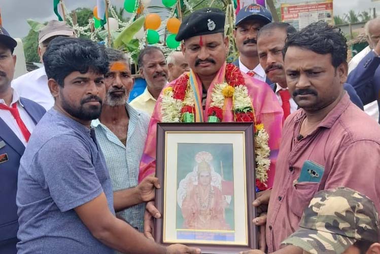 ಗ್ರಾಮಕ್ಕೆ ಯೋಧ ಆಗಮಿಸುತ್ತದ್ದಂತೆ ಹೂ ಮಳೆಗೈದರು. ನೆನಪಿನ ಕಾಣಿಕೆ ನೀಡಿ ಗೌರವಿಸಿದರು.ಗ್ರಾಮದ ಪ್ರಮುಖ ಬೀದಿಗಳಲ್ಲಿ ತೆರದ ವಾಹನದಲ್ಲಿ ವಿಜೃಂಭಣೆಯಿಂದ ಮೆರವಣಿಗೆ ನಡೆಯಿತು.