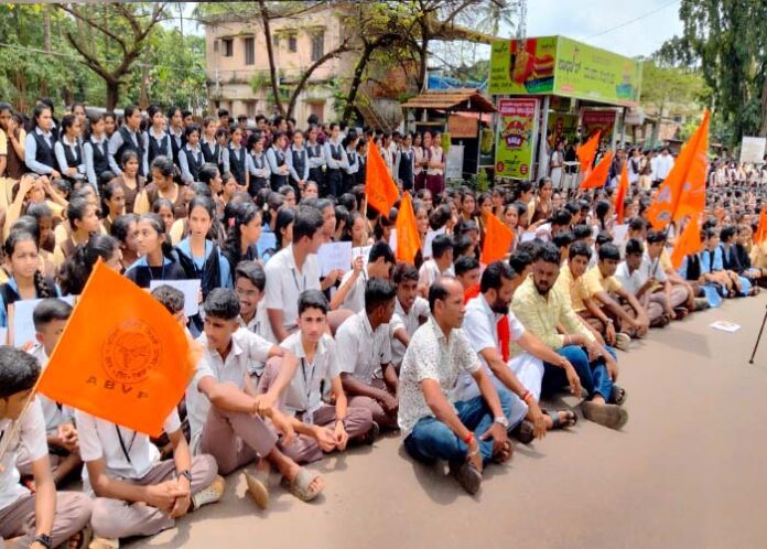 ಮಹಿಳಾ ಶೌಚಾಲಯದಲ್ಲಿ ಮೊಬೈಲ್ ಕ್ಯಾಮರಾ ಇರಿಸಿ ಹಿಂದೂ ಯುವತಿಯಾದ ಚಿತ್ರೀಕರಣ ಮಾಡುತ್ತಿದ್ದ ಘಟನೆಯನ್ನು ಖಂಡಿಸಿ ಅಖಿಲ ಭಾರತೀಯ ವಿದ್ಯಾರ್ಥಿ ಪರಿಷತ್ತಿನ ಪುತ್ತೂರು ಘಟಕದ ಆಶ್ರಯದಲ್ಲಿ ಇಂದು ಪುತ್ತೂರಿನ ನೆಹರು ನಗರದಲ್ಲಿ ರಸ್ತೆ ಬದಿ ಧರಣಿ ಕುಳಿತು ಬೃಹತ್ ಪ್ರತಿಭಟನೆ ನಡೆಸಲಾಯಿತು.
