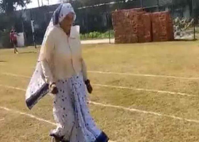 ಮೀರತ್ನಲ್ಲಿ ಆಯೋಜನೆಗೊಂಡಿದ್ದ 100 ಮೀಟರ್ ಓಟದ ಸ್ಪರ್ಧೆಗಳಲ್ಲಿ ವಿದ್ಯಾರ್ಥಿಗಳ ಜೊತೆಗೆ 80 ವರ್ಷದ ವೃದ್ದೆ ಸೀರೆ ಧರಿಸಿ ರನ್ನಿಂಗ್ ಟ್ರ್ಯಾಕ್ ಶೂ ಧರಿಸಿ ಭಾಗವಹಿಸಿದ್ದರು. ಆಯೋಜಕರು ಸೀಟಿ ಊದೋದೆ ತಡ ವೃದ್ಧೆ ರೇಸ್ ಕುದುರೆಯಂತೆ ಟ್ರ್ಯಾಕ್ ಮೇಲೆ ಓಡಿದ್ದಾಳೆ. 100 ಮೀಟರ್ ಓಟವನ್ನು ಕೇವಲ 49 ಸೆಕೆಂಡ್ ಗಳಲ್ಲಿ ಪೂರ್ಣಗೊಳಿಸಿ ಎಲ್ಲರ ಹುಬ್ಬೇರುವಂತೆ ಮಾಡಿದರು.
