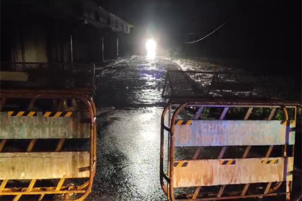 ಸೇತುವೆಯ ಪ್ರವಾಹದಿಂದಾಗಿ ಕಳಸದೊಂದಿಗಿನ ಸಂಪರ್ಕವು ಅಡಚಣೆಯಾಗಿದೆ. ನಿನ್ನೆ ಸಂಜೆಯಿಂದ ಸೇತುವೆ ಮೇಲೆ ಭದ್ರಾ ನದಿ ಹರಿಯುತ್ತಿದೆ.