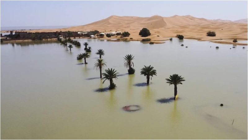 ಆಗ್ನೇಯ ಮೊರಾಕ್ಕೊದಲ್ಲಿ ಎರಡು ದಿನಗಳ ಧಾರಾಕಾರ ಮಳೆಯ ನಂತರ ಸಹರಾ ಮರುಭೂಮಿಯ ಕೆಲವು ಭಾಗಗಳಲ್ಲಿ ತೀವ್ರ ಪ್ರವಾಹ ಸೃಷ್ಟಿಯಾಗಿದೆ. ಕೇವಲ 24 ಗಂಟೆಗಳಲ್ಲಿ 100 ಮಿ.ಮೀ ಮಳೆಯಾಗಿತ್ತು ಎಂದು ಮೊರಾಕ್ಕೊದ ಹವಾಮಾನ ಸಂಸ್ಥೆಯ ಅಧಿಕಾರಿಗಳು ತಿಳಿಸಿದ್ದಾರೆ.