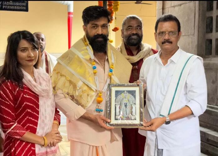 ಸುರ್ಯ ಶ್ರೀ ಸದಾಶಿವ ರುದ್ರ ದೇವಸ್ಥಾನಕ್ಕೆ ಆಗಮಿಸಿ, ದೇವರ ದರುಶನ ಪಡೆದಿದ್ದು, ದೇವಸ್ಥಾನದ ಆಡಳಿತ ಮೊಕ್ತೇಸರ ಪ್ರೊ. ಸತೀಶ್ಚಂದ್ರ ಅವರು ಯಶ್ ಹಾಗೂ ರಾಧಿಕಾಗೆ ಸ್ಮರಣಿಕೆ ನೀಡಿ ಗೌರವಿಸಿದ್ದಾರೆ.